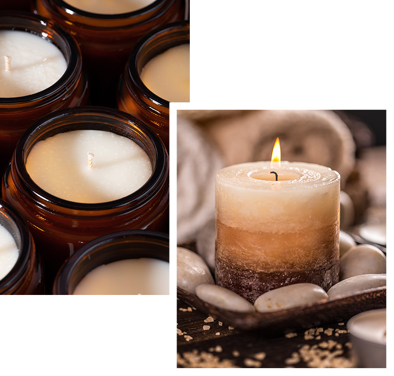 Nous proposons une variété de bougies —en pot, sculptées et en gel— avec des designs divers pour répondre aux différentes demandes des clients.